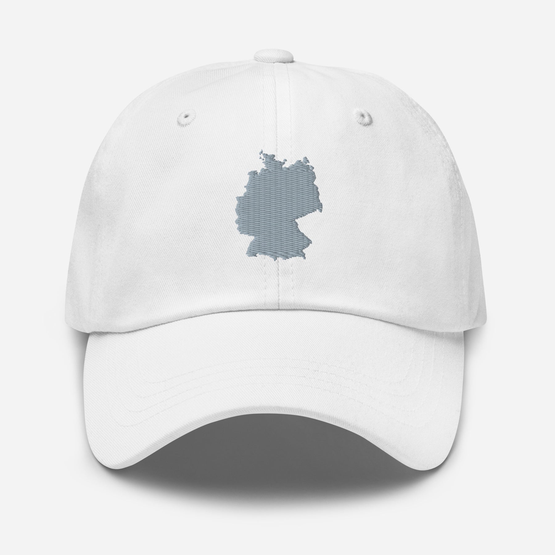 Gestickte Deutschlandkarte in grau mittig auf der Mütze.