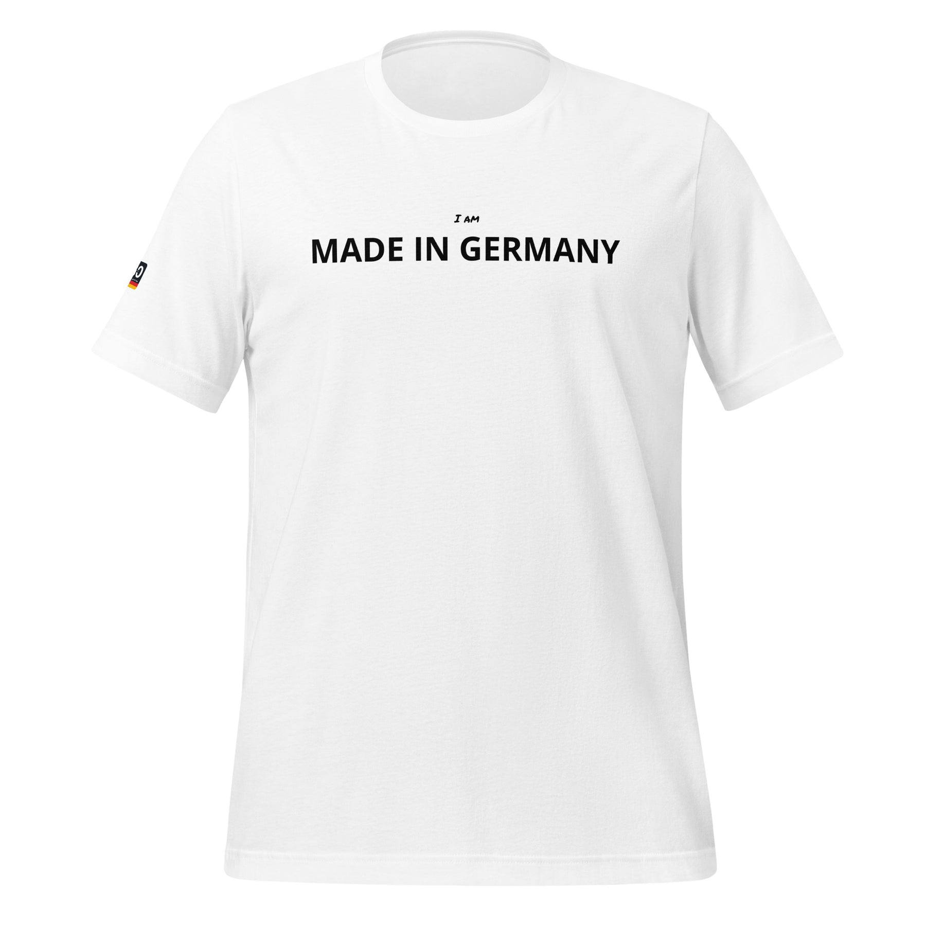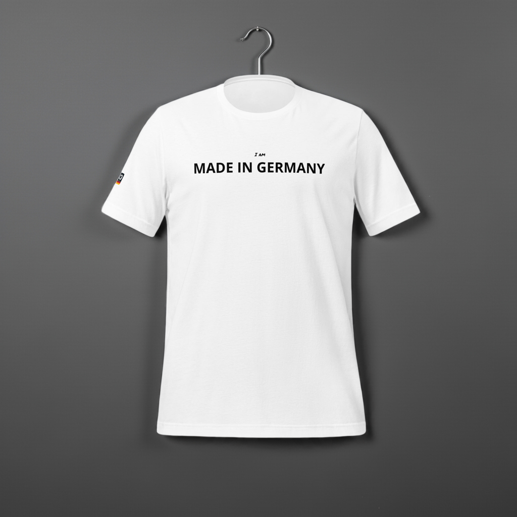 "I am Made in Germany" in der Deutschlandedition. Schriftzug schwarz, T-Shirtfarbe weiß.